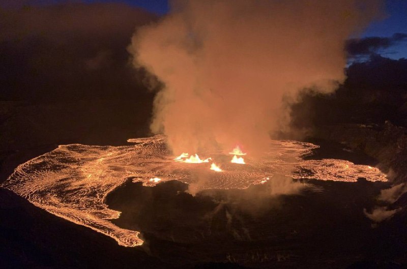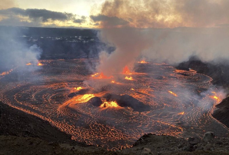 Потоки лавы сейчас покрывают дно кратера Халемаумау. Объявлен «красный» код авиационной опасности. Килауэа — один из самых активных действующих вулканов на Земле,