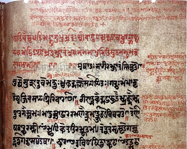 Текст санскритской рукописи по медицине, хранящейся в библиотеке Уэллкома, Лондон