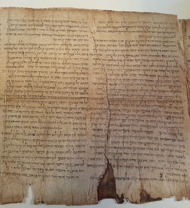 Факсимиле Великого свитка Исайи, одной из первых Кумранских рукописей, иврит. Относится ко второму веку до н.э.