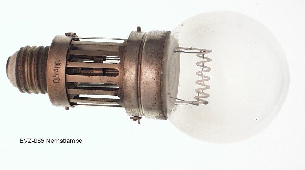 Однако каолин не был единственным твердым электролитом. Вальтер Нернст в 1890-х годах проводил эксперименты с различными веществами, чтобы определить, какой из них можно использовать в лампе. Оказалось, что керамический стержень, содержащий оксиды тория, циркония, эрбия, кальция и иттрия, также может служить источником света.