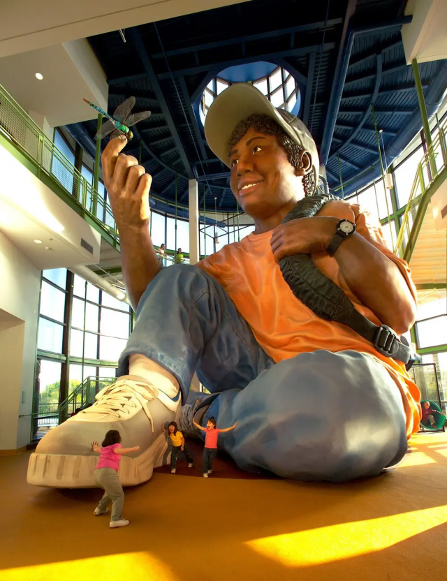 Гигантская статуя мальчика по имени Эдди, внутрь которой дети могут забраться в детском музее EdVenture, США