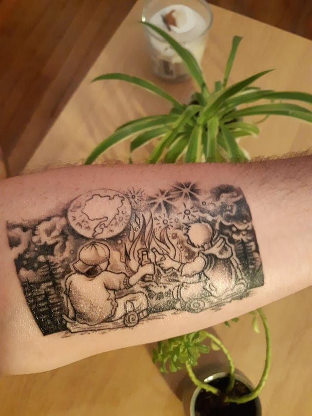 Мой лучший друг покинул этот мир в прошлом году. Я сделал эту татуировку, чтобы помнить хорошие времена, которые у нас были.