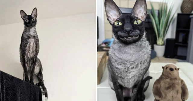 Этого очаровательного парня зовут Пиксель. Он относится к породе корниш-рекс.