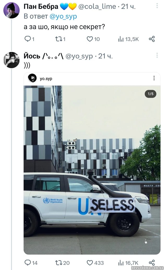 - ООН подала в суд на украинца, наклеевшего постер с надписью "useless" на одну из ее машин