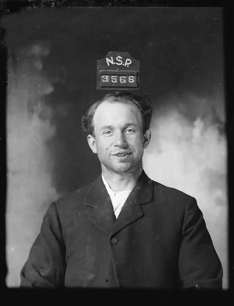Как вы знаете, улыбающиеся лица на фотографиях Викторианской эпохи довольно редки, поэтому ухмыляющийся Джордж на тюремном снимке максимально необычен на этом магшоте. Особенно, если учесть, что он отсидел 10 лет за непредумышленное убийство в конце 1890-х годов.