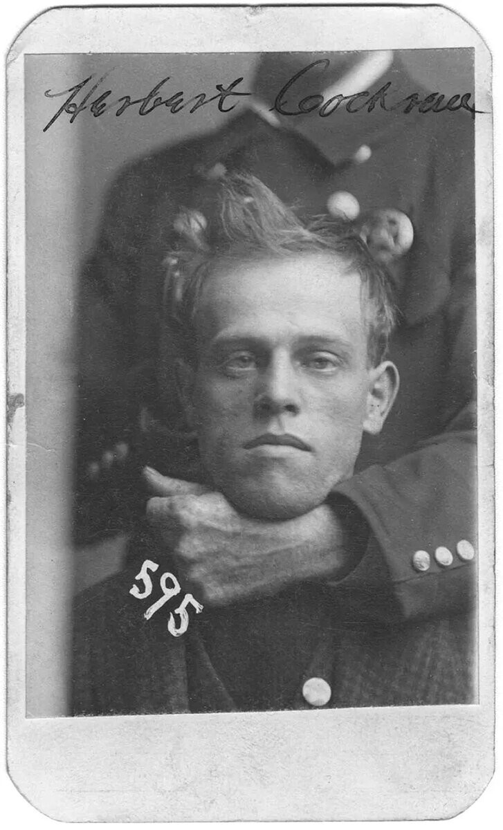 Кокрэн был арестован 24 ноября 1899 года за кражу со взломом. Согласно описанию полиции, портной из Фэрмонта, штат Небраска, Кокрэн, имел слегка сутулое телосложение, светлое лицо и брови, сходившиеся у основания носа. Фотографироваться мужчина не пожелал, поэтому на снимке видны также руки неизвестного полицейского.