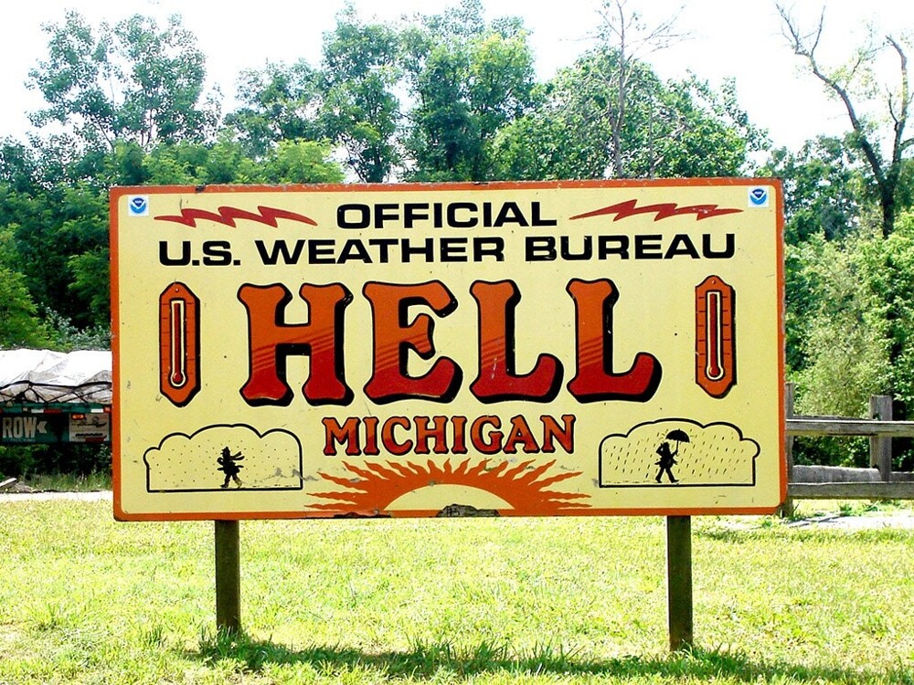 В штате Мичиган, США, есть городок под названием Ад. Неизвестно, откуда взялось это название, но его жители готовы поддержать этот “адский“ образ города. Туристы с энтузиазмом фотографируются с надписью ”Добро пожаловать в ад”. Местный сувенирный магазин продает право собственности на один квадратный метр земли в Аду, конечно же, за $6,66.