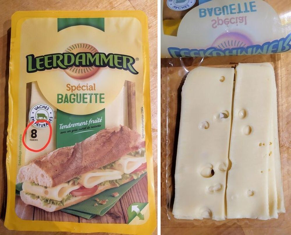 На упаковке написано 8 ломтиков, а на самом деле 4 ломтика, разрезанных пополам