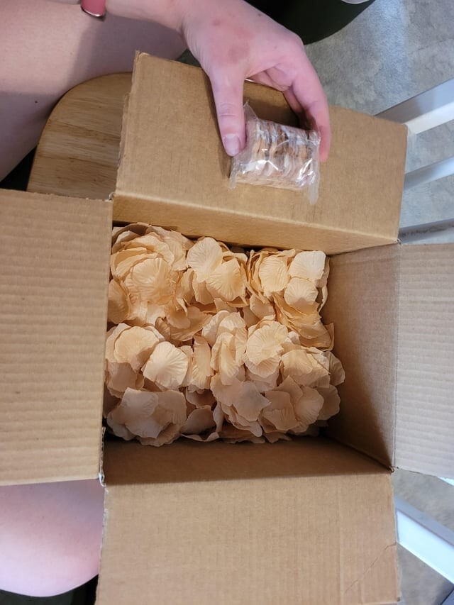 Как выглядят 500 лепестков шёлковых цветов, упакованных в коробку и специальный пакет