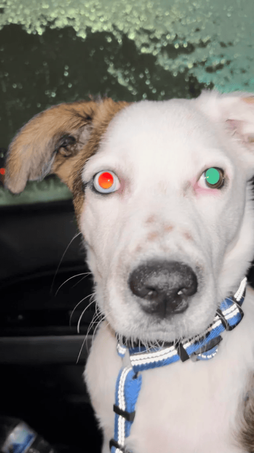 У моего щенка глаза двух разных цветов — один синий, другой тёмно-коричневый