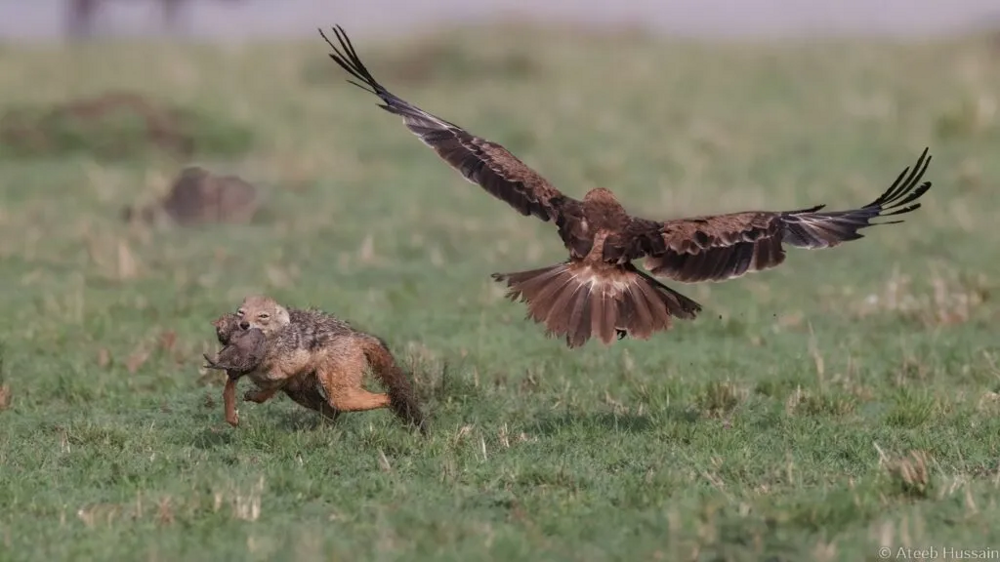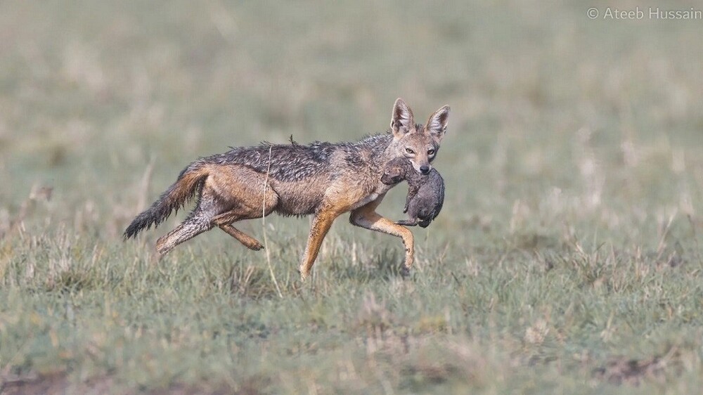39-летний фотограф Атиб Хуссейн запечатлел драматический момент и сказал, что впервые заметил, как мать шакаленка бежит с детенышем во рту.