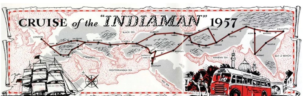Первый из Лондона в Калькутту автобус стартовал в 1957 году. Это было путешествие в 50 дней и 32 670 километров через 11 стран: из Англии, через пролив Ла - Манш на пароме в Бельгию, затем ФРГ, Австрию, еще единую Югославию и социалистическую Болгарию, Турцию, Иран, Афганистан, Пакистан в Индию.