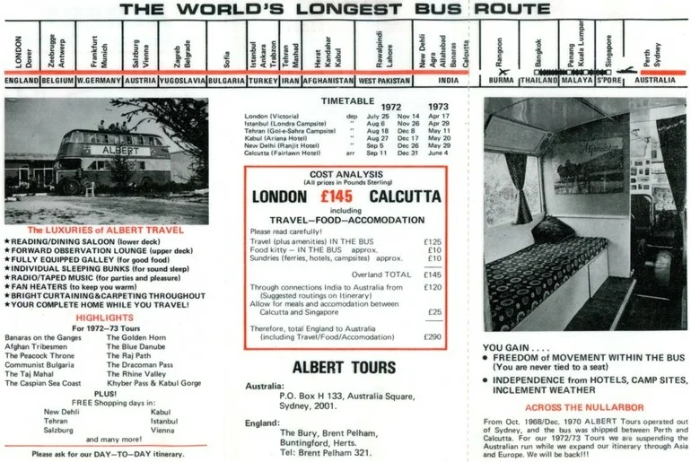 Всего до 1976 года "Альберт" совершил пятнадцать поездок между Калькуттой и Лондоном и четыре тура из Англии в Австралию. За все это время автобус беспрепятственно пересек почти 150 границ.