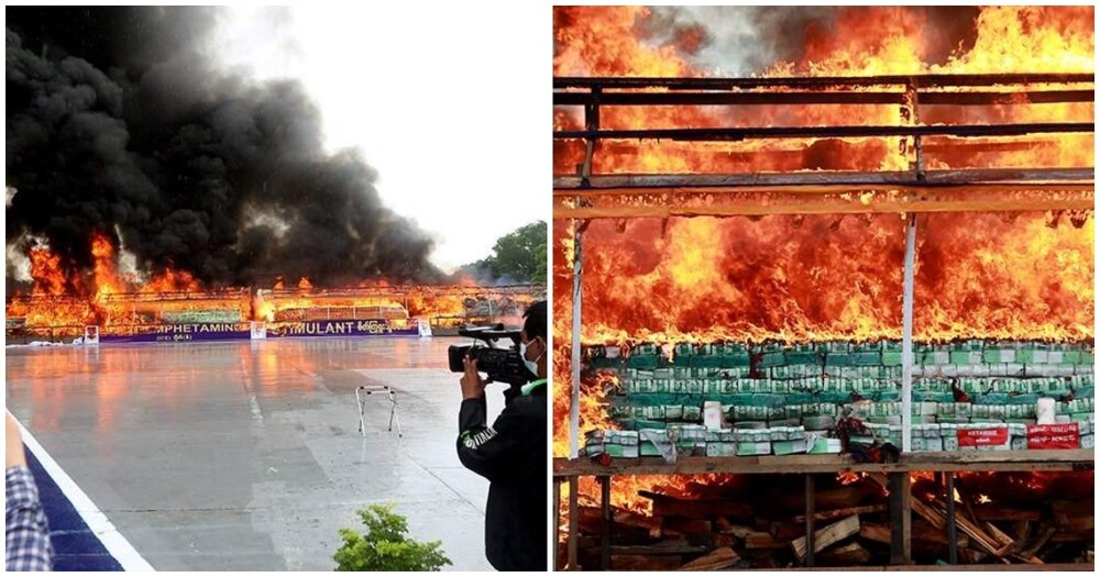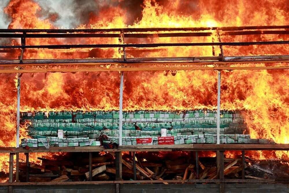 Полиция Мьянмы провела публичное сожжение огромных партий наркотиков на общую сумму в 446 миллиона долларов. Мероприятие проходило в рамках Международного дня борьбы с наркоманией и незаконным оборотом наркотиков.
