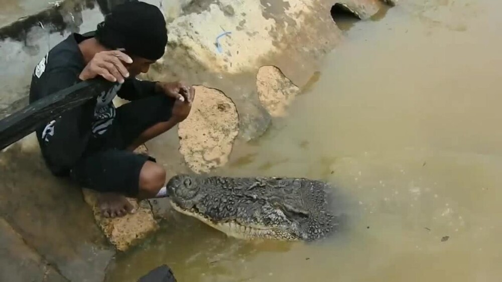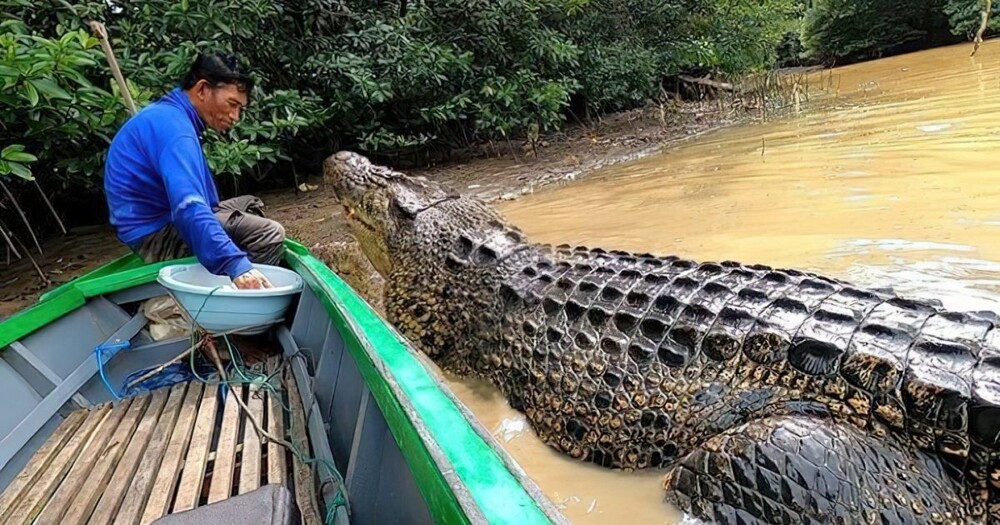 59-летний Амбо, рыбак с острова Калимантан, стал своего рода знаменитостью в Индонезии. У него есть очень необычный друг — огромный морской крокодил по кличке Ризка. Четырёхметровая рептилия и Амбо познакомились 26 лет назад, и с тех пор общаются постоянно.
