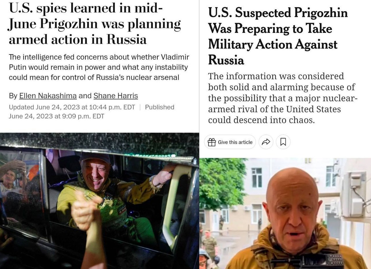 NYT отмечает, что американцы знали о намерениях Пригожина — за два дня до начала его бунта.