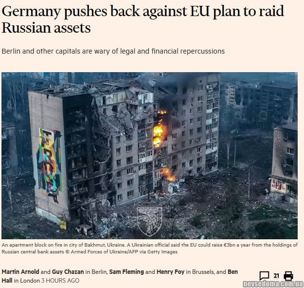 Германия выступает против возможной передачи замороженных российских активов для восстановления Украины.