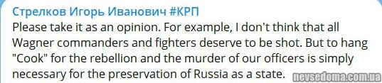 - Бывший агент ФСБ и российский командующий Игорь Стрелков (Гиркин) призывает повесить вагнеровского Пригожина, потому что это «просто необходимо для сохранения России как государства».