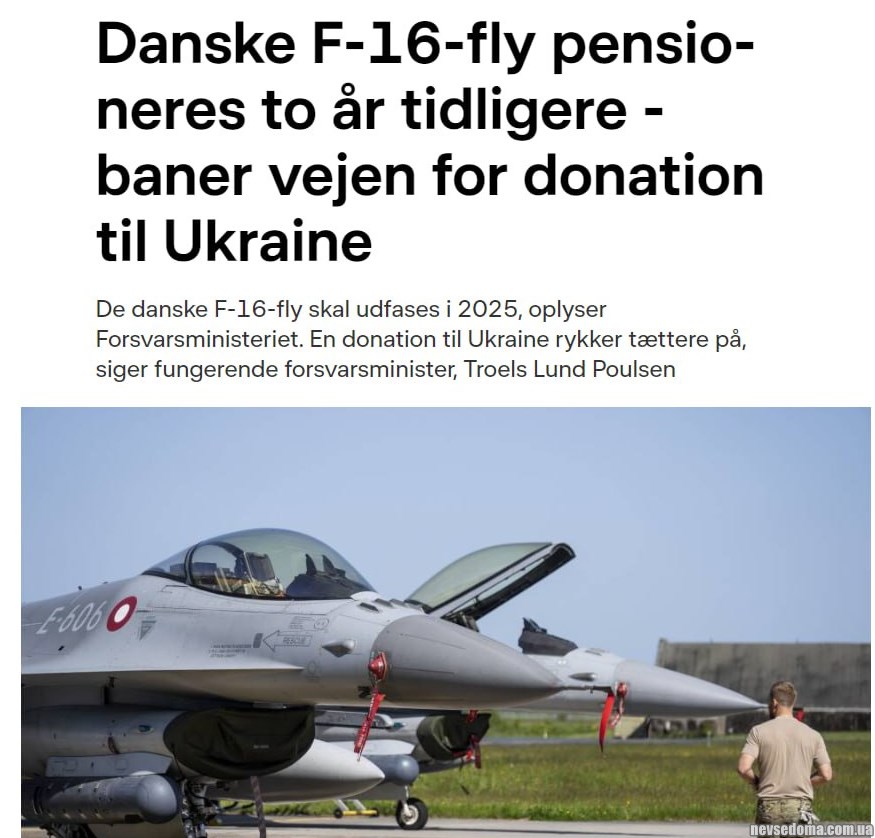 - Дания спишет свои F-16 на два года раньше, что приблизит их передачу Украине.