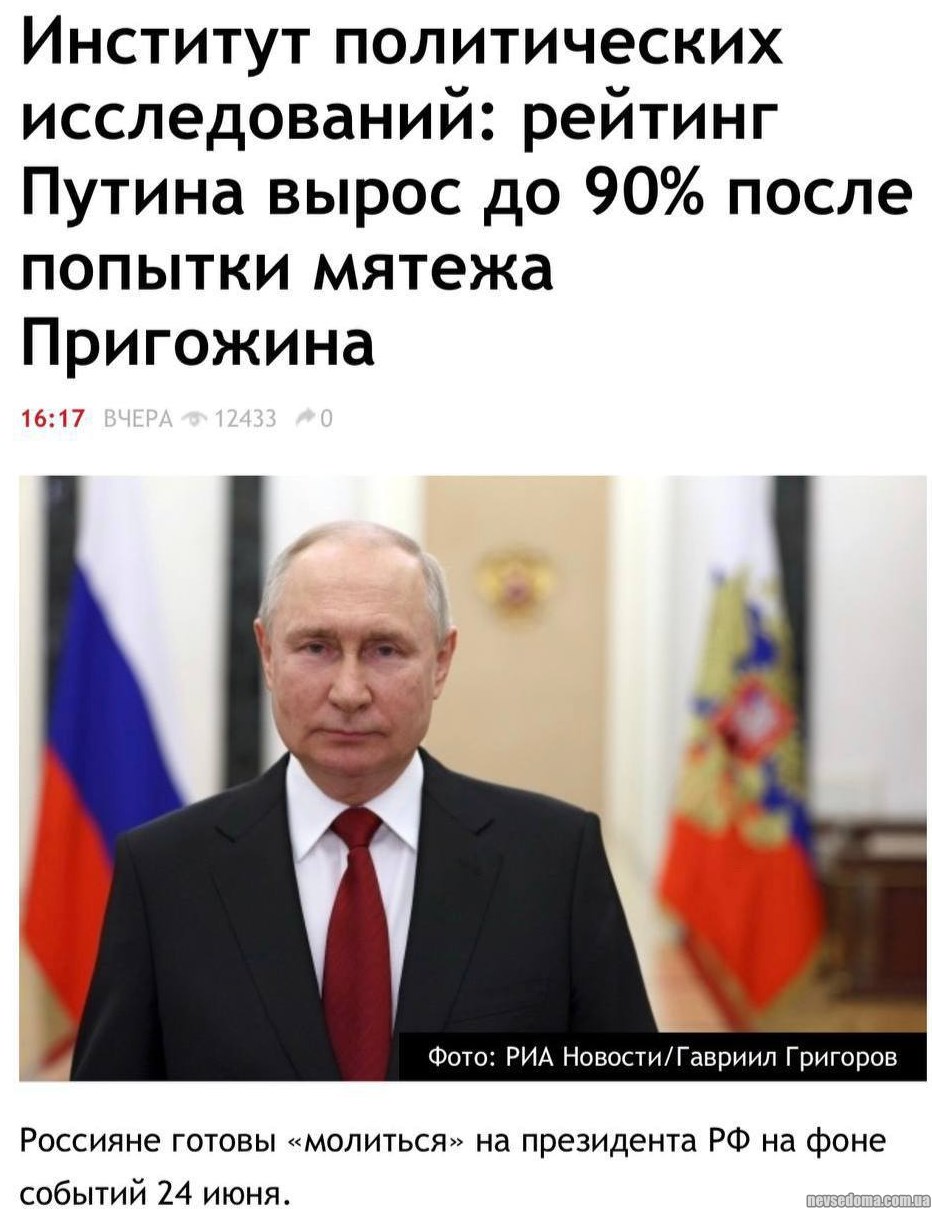 - "Рейтинг Путина после мятежа вырос до 90%, а россияне готовы на него молиться"