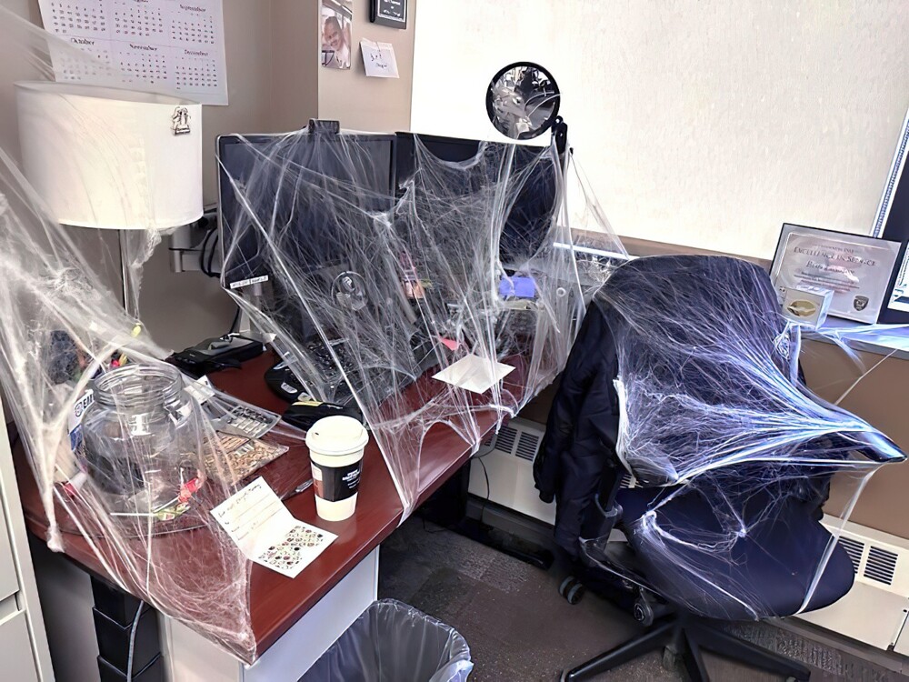 4. «Вчера я пришёл на работу с усами. Сегодня на рабочем месте меня ожидала вот такая инсталляция»