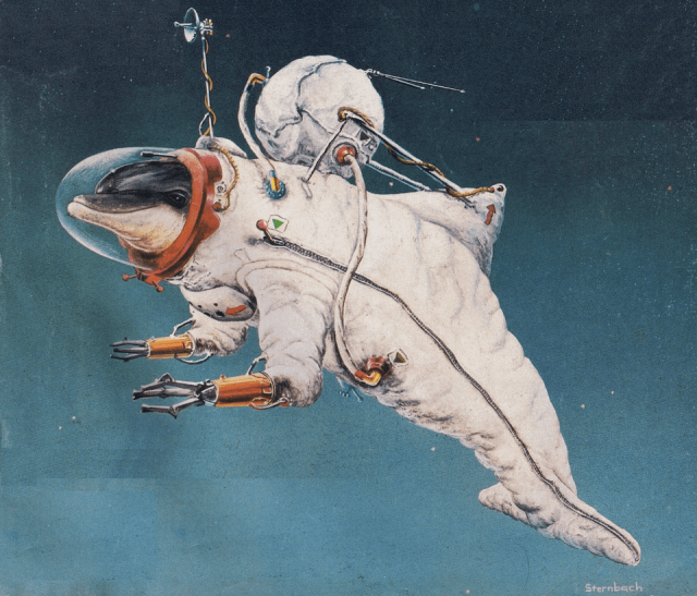 Дельфины-помощники. Это обложка мартовского номера журнала Future Life (№17), созданная художником Риком Штернбахом в 1980 году.