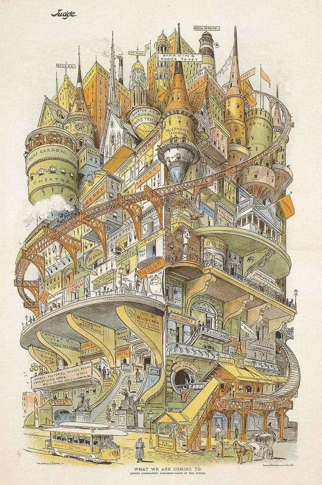 Вертикальный город будущего из журнала «Judge», 1895 год