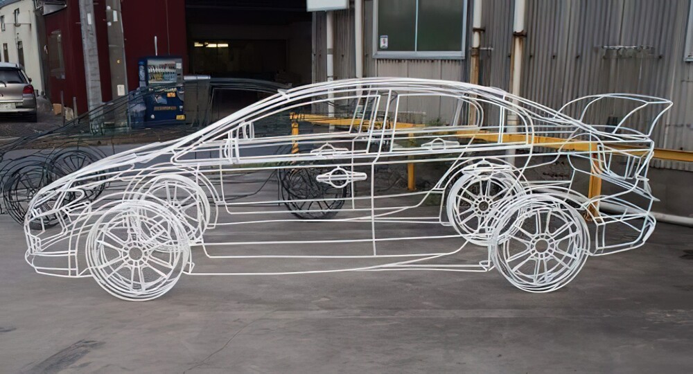 Японцы создали каркас автомобиля из проволоки, который выглядит как нарисованный (5 фото + 1 видео)