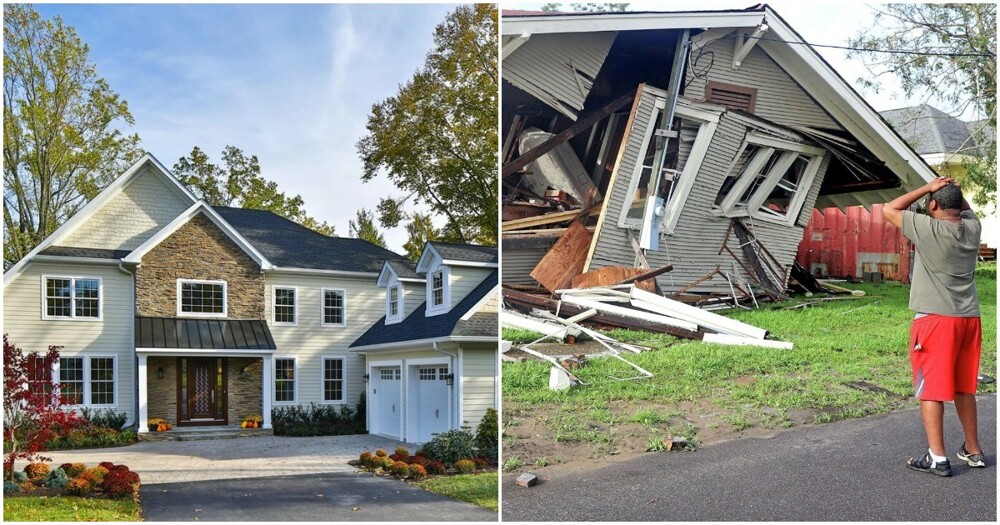 При строительстве домов в США используются очень лёгкие материалы. В североамериканских штатах, при строительстве, используют деревянные брусья в качестве каркаса и его обшивают фанерой или листами ДСП. Не картон, конечно, но отличий немного. А снаружи обшивают сайдингом, а то и декоративным кирпичом.