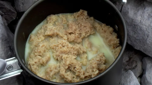 Круудмоэс, старинное голландское блюдо из ячменя, пахты, бекона, копченой колбасы, изюма и свежей зелени