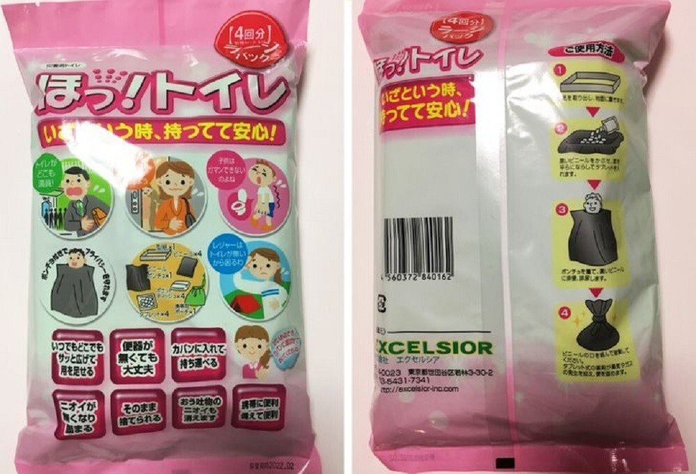 Например, вот набор, который выдают на работе. В каждом — таблетки, салфетки, пакеты и пончо для уединения. Оказывается, это переносной туалет.