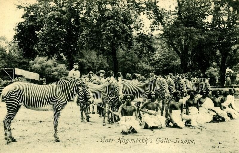 А вот группа эфиопов, которых вывезли ещё детьми в тот же немецкий зоопарк, сидела в загоне прямо с зебрами. Типа как дома в Африке, ага.