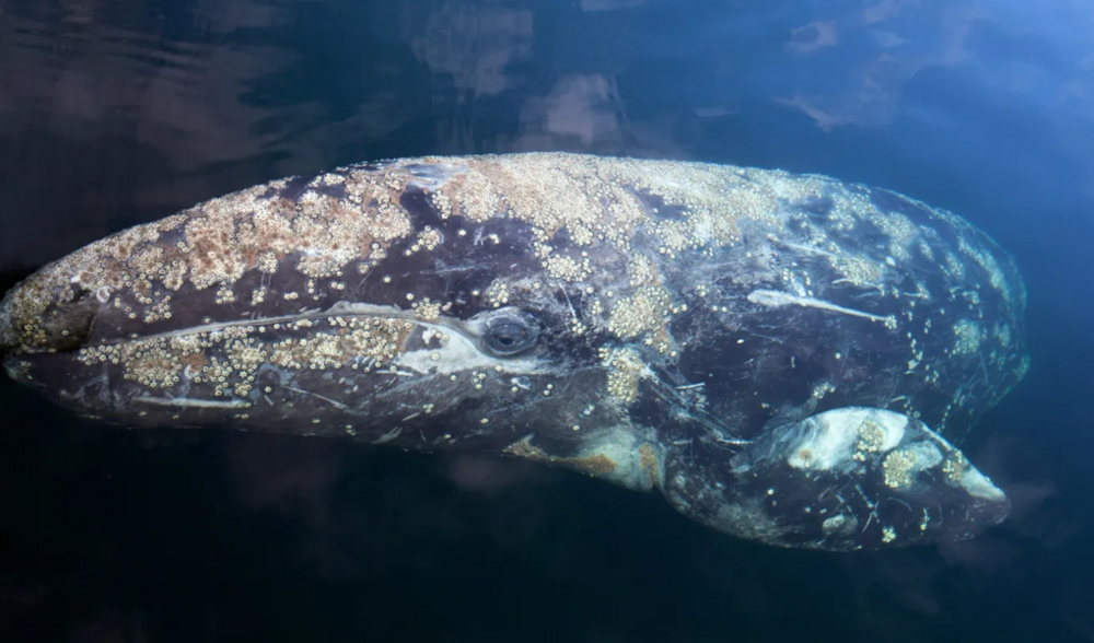 Серые киты у берегов Нижней Калифорнии не боятся подплывать к лодкам, несмотря на то, что в 20 веке на них велась жестокая охота. Тактика китобоев включала убийство детеныша, чтобы подцепить гарпуном кормящую самку.