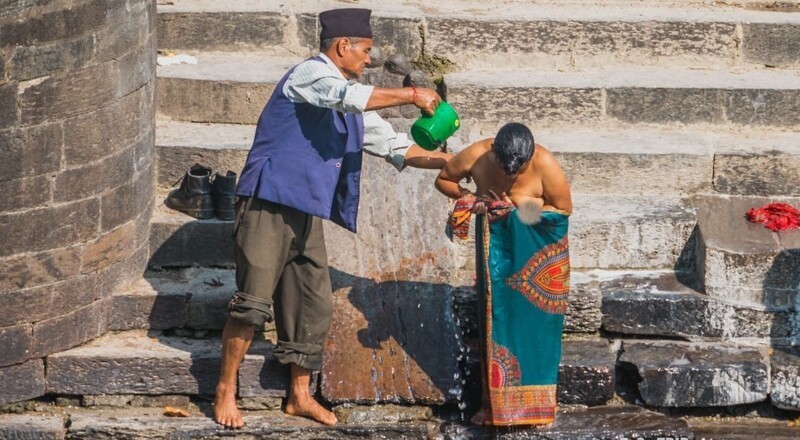 Женщинам немного сложнее, так как в культуре Непала не допускается их обнажение. Дамам приходится мыться в реке прямо в сари. Несмотря на многочисленные складки одежды, они все же находят способ очиститься.