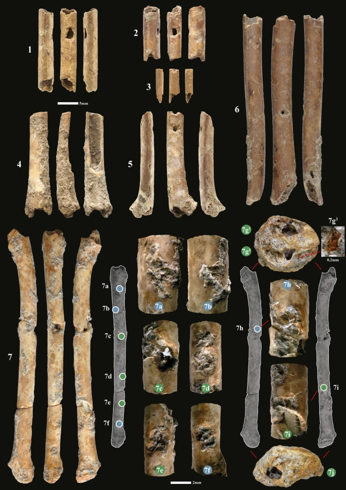 Детальный анализ материала представлен в журнале Scientific Reports. К сожалению, шесть музыкальных инструментов оказались расколоты, но зато последний – длиной примерно 6,5 сантиметров, отлично сохранился, что позволило изучить флейту и сделать вывод, что её основой стали трубчатые кости небольших уток.