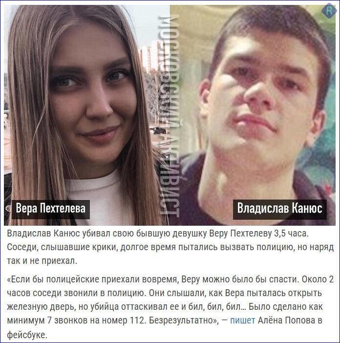 На теле В. Пехтелевой судмедэксперты насчитали 111 травм, в том числе 56 ножевых ранений. По данным следствия, её бывший парень Владислав Канюс, с которым она решила расстаться, истязал девушку на протяжении более трёх часов.