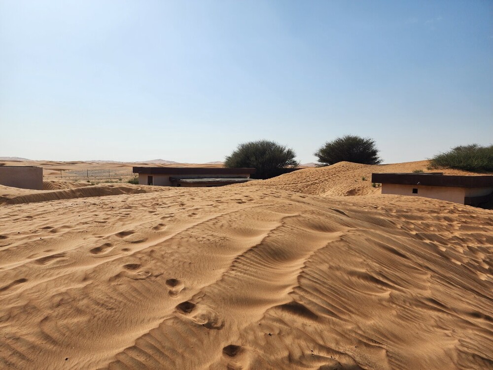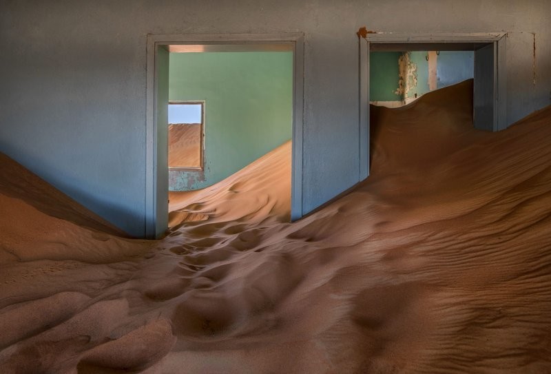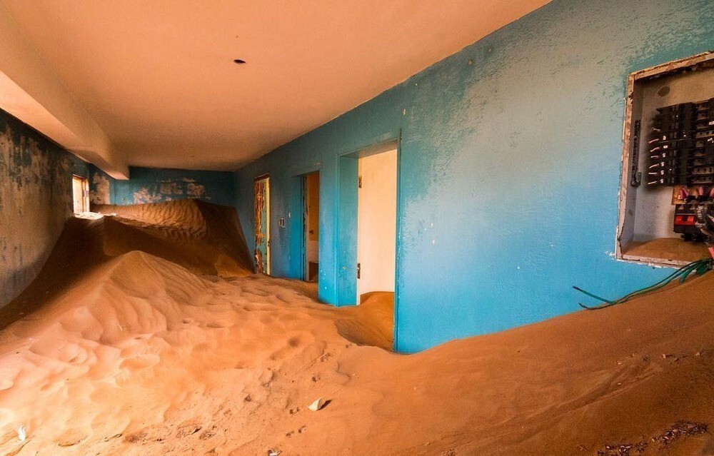Строения сохранились неплохо. В них вполне можно было бы жить. Но единственный обитатель призрачной деревни – это песок. Который шаг за шагом, метр за метром поглощает творения человеческих рук. А потом нехотя отдаёт обратно. Словно невидимый глазу гигантский ребёнок играет в песочнице, высыпая содержимоё ведёрка на дома, а потом расчищает погребённые под толстым слоем строения, чтобы продолжить игру.