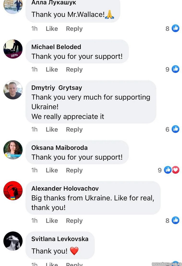 - Министр обороны Британии Бен Уоллес заявил, что его слова о благодарности западным партнёрам вырвали из контекста, а он сам будет продолжать поддерживать Украину столько, сколько будет нужно