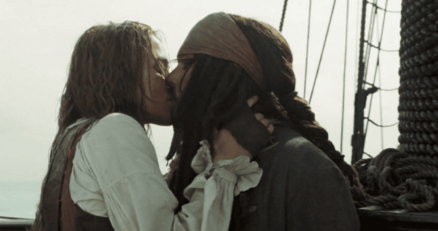 На фото Кира Найтли в роли Элизабет Суонн и Джонни Депп в роли Джека Воробья.