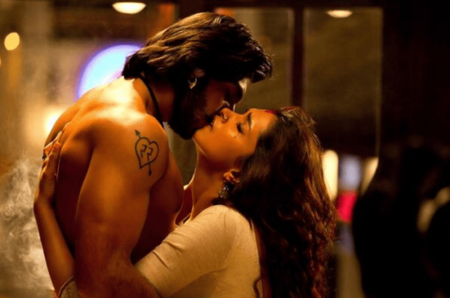 На фото Ранвир Сингх в роли Рама и Дипика Падуконе в роли Лилы.