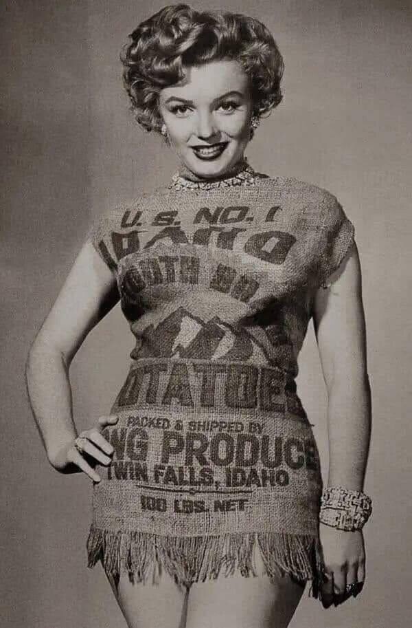 9. В 1950 году один из журналистов раскритиковал Мерилин Монро, сказав что ее красота заключается в дорогой одежде. В качестве ответа она надела мешок для картошки и устроила фотосессию