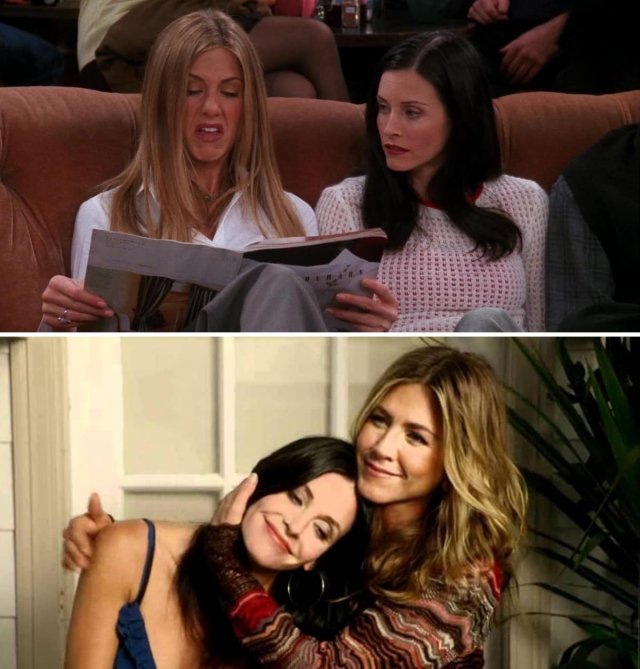 Актрисы дружат с тех пор, как познакомились на площадке «Друзей» (первое фото) и продолжают не только общаться, но и работать вместе. На втором фото вы видите кадр из комедийного сериала «Город хищниц» (2009), где Кортни Кокс играет главную роль, а также они снимались в сериале «Жёлтая пресса» (2007-2008).