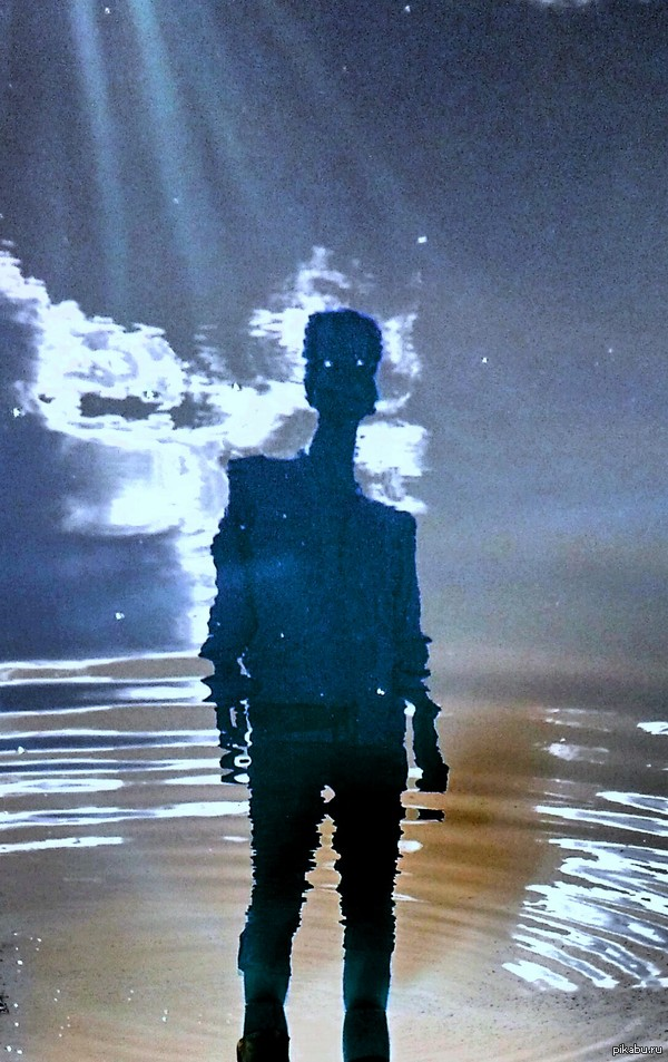 Сфоткал отражение друга в воде, возле затопленной баскетбольной площадки.