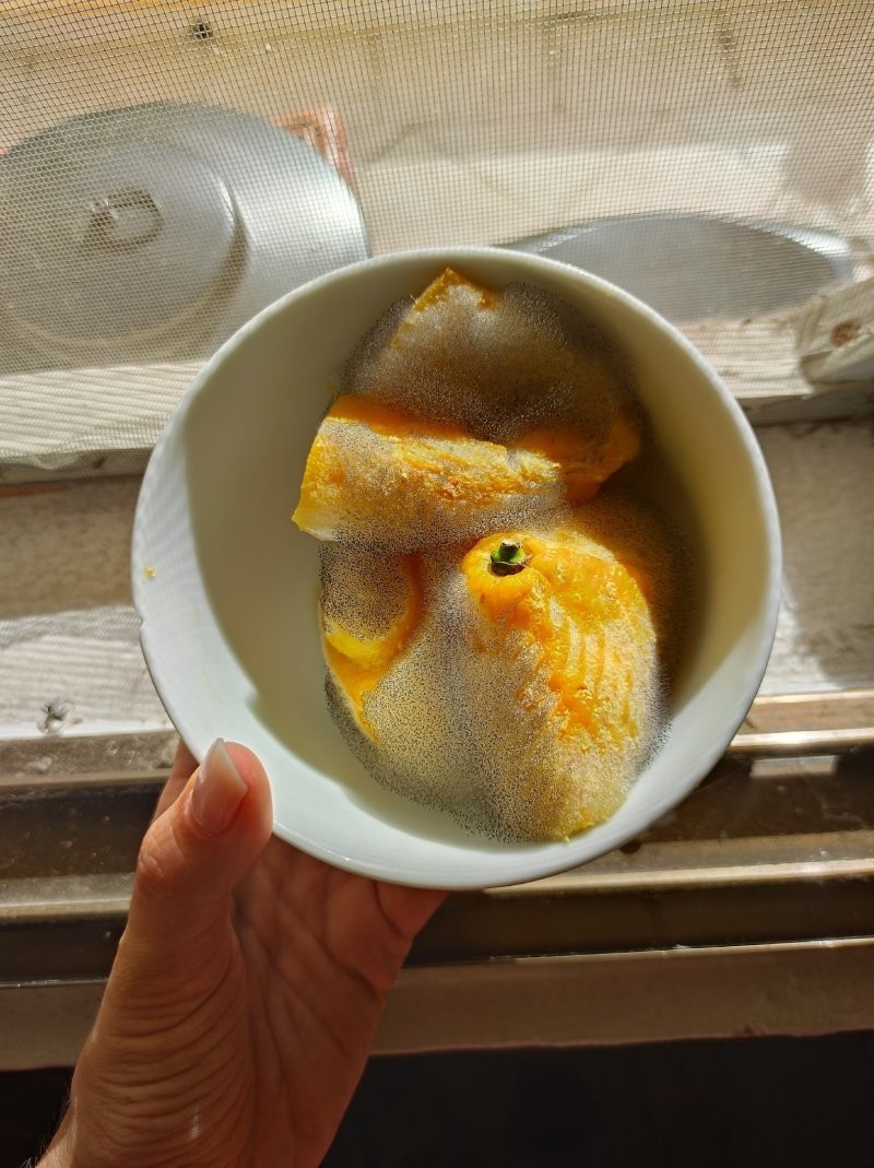 1. Забытый на улице лимон напоминает какое-то произведение искусства
