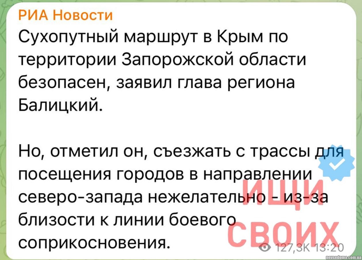 Дорога в Крым абсолютно безопасна, только танки на дорогах и страховка не действует Категория: Российская пропаганда, PEGI 16 26 июля 2023 Такая вот реклама "курорта" -1