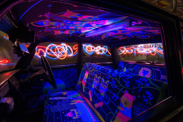 Талантливые дизайнеры из Мумбаи задумали крутой проект. Они превращают салоны обычных такси в необычные арт-объекты. А поскольку дизайнеры из Индии, значит и дизайн должен быть ярким, веселым и блестящим, как дискотека! Да, машины от этого новее не станут, но в таком салоне пассажир будет чувствовать себя на съемках болливудского кино.