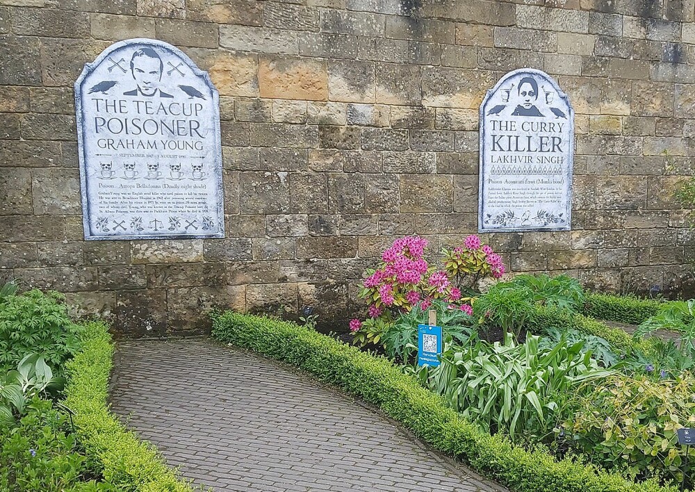 Затея удалась, ведь мало кому в здравом уме придёт в голову украшать свой цветник ядовитым плющом или белладонной. Все экспонаты в Алнике снабжены табличками с названием и описанием. А отдельные оформлены особенно креативно и информативно: над клумбами размещены портреты отравителей и имена жертв, которым помогли уйти в мир иной с помощью именно этого растения.