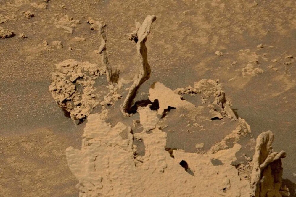 В июне марсоход обнаружил причудливые искривленные колонны, которые оказались окаменелыми породами. Вероятно, они представляют собой зацементировавшуюся массу минералов, которая просочилась в трещины в скале. За миллионы лет породы разрушились, а застывшие потоки плотного материала остались.