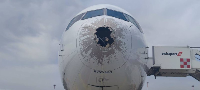 А вот и новая аэрофобия: самолет был вынужден совершить аварийную посадку в Риме из-за града (4 фото)