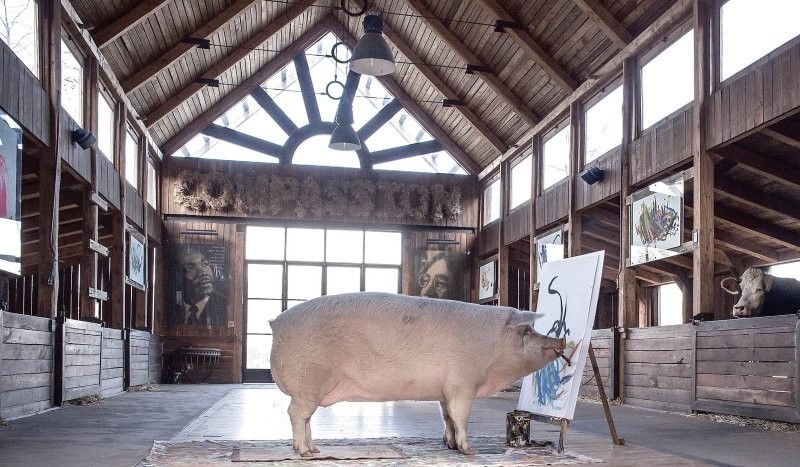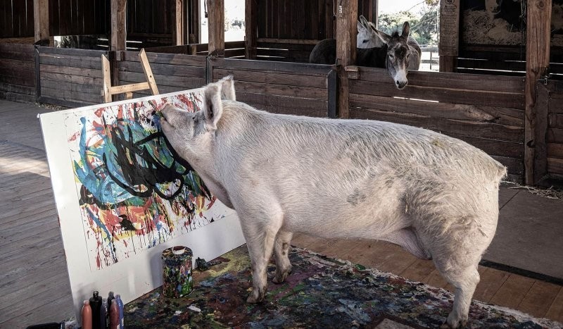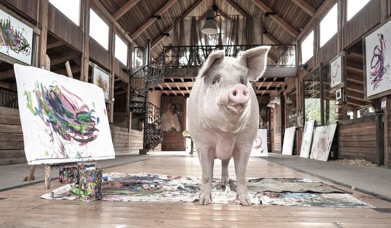 Свинья-художник нарисовала картины на 1 млн долларов (7 фото)